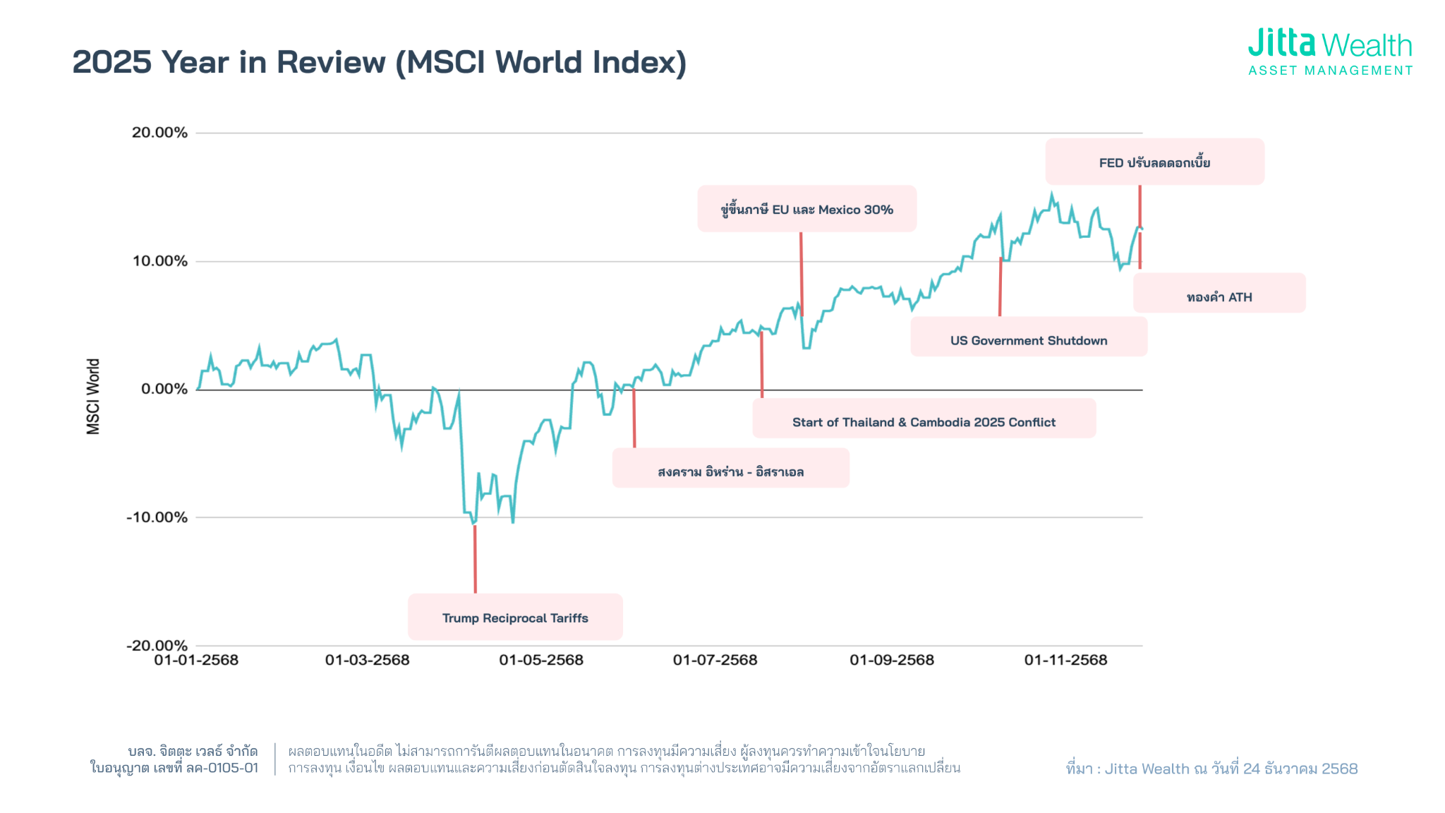 - ปี 2568 เป็นปีแห่งความผันผวน จากทั้งการเมืองโลก Tariffs สงคราม เทคโนโลยี AI ดอกเบี้ย และค่าเงิน